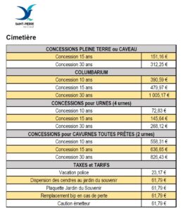 Tarifs 2026